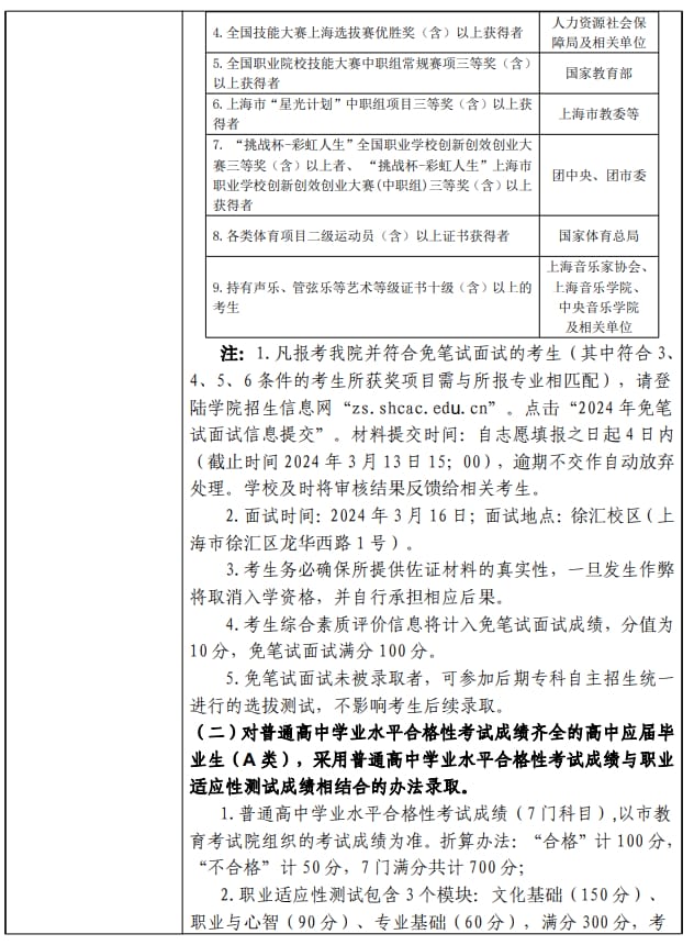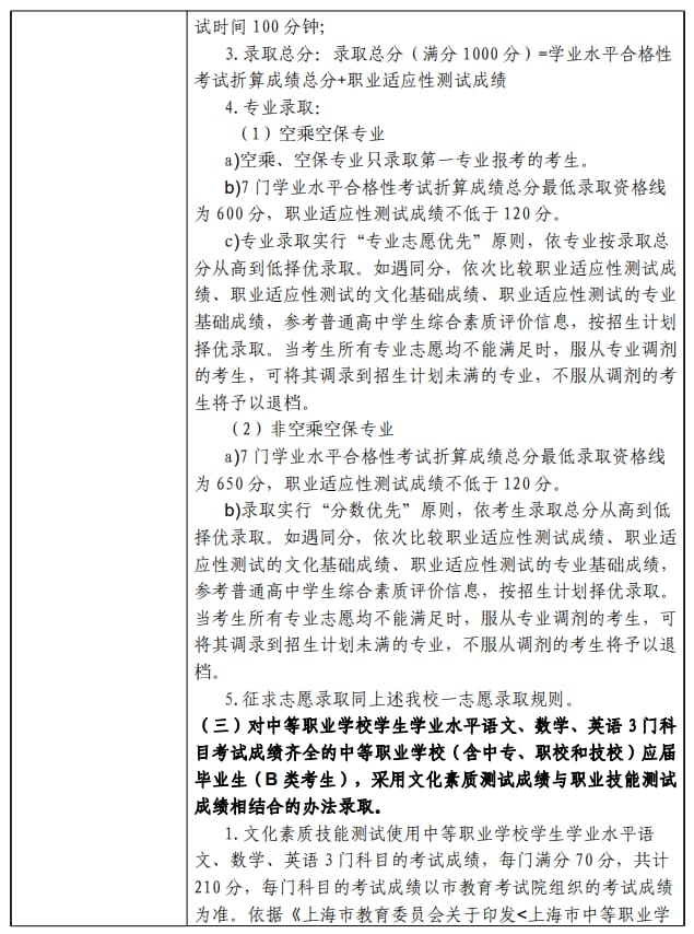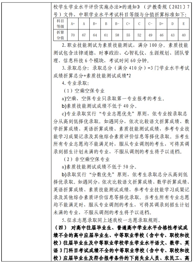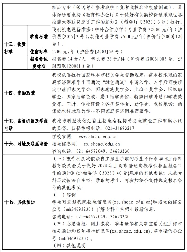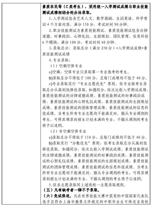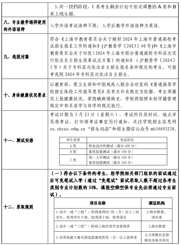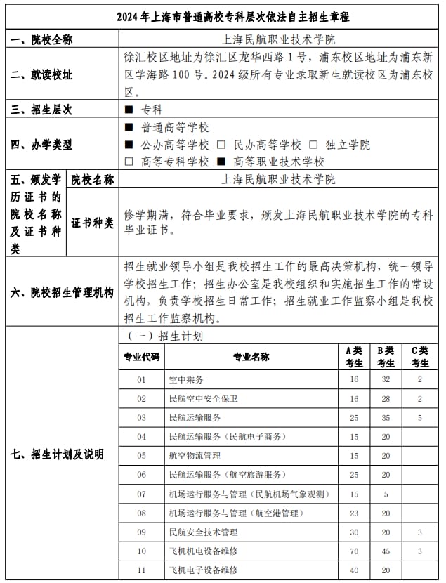 上海民航职业技术学院2024年上海市普通高校专科层次依法自主招生章程